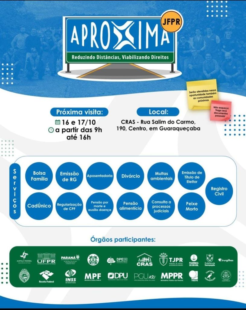 O Projeto Aproxima, uma iniciativa da Justiça Federal do Paraná (JFPR), atua em parceria com outras instituições para levar serviços públicos e garantir direitos a comunidades vulneráveis no litoral paranaense. Focada em grupos como indígenas, caiçaras e